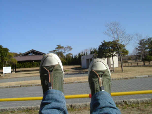 海浜公園まで戻ったところで、ブランコを発見。いつでもブランコに乗る機会を虎視眈々と狙っている身としては、乗らないわけにはいくまい。