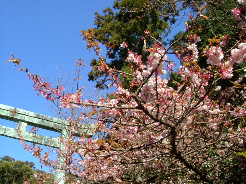 東照宮では今日は結婚式があったようで、花嫁さんを見かけた。梅も咲いていたが、山桜が咲いている。駿河湾を見下ろして一服。