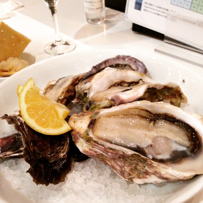 ご馳走はオイスターバーで。岩牡蠣と真牡蠣の食べ比べとかした。