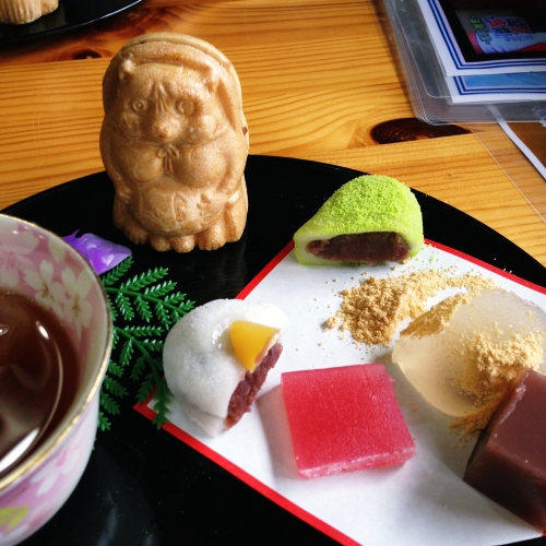 神社の近くでたぬきもなかを食べました。あんこぎっしり。関西ローカルのとなりの人間国宝のステッカーがあってめちゃアピールしてくれました。