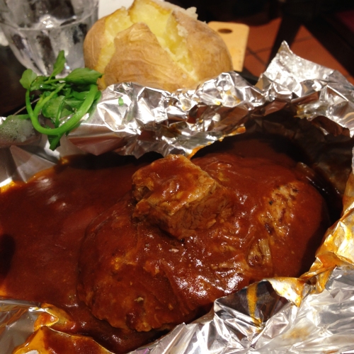 丸ごとトマトといい丸ごとジャガイモといい大胆。このふかしたジャガイモ、ほっくりしてほんのり塩バター味ですごくおいしかったです。ハンバーグもおいしかったけど上に乗ってる牛肉がほろりととろけた。