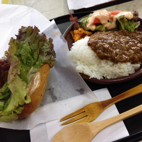 昼食は看板を見かけて備前バーガーとカレーのセットを食べました。