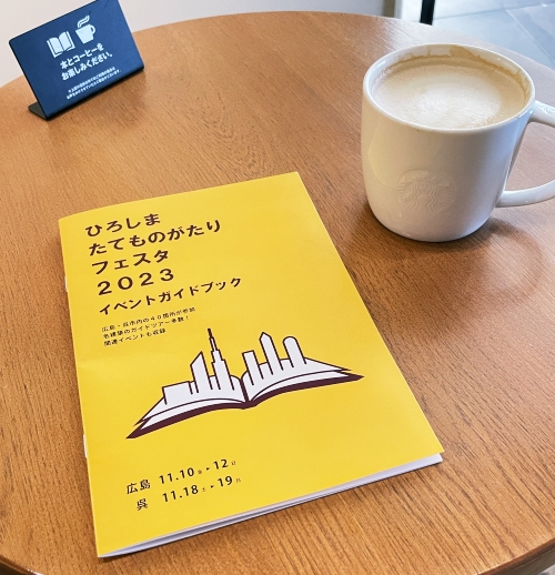 何箇所かおすすめを教えてもらい、広島で建物のイベントをやっているんですよね、と聞くと、2023年の冊子をくれたので、駅の近くのスタバに入って2日間分の計画をねりねり。