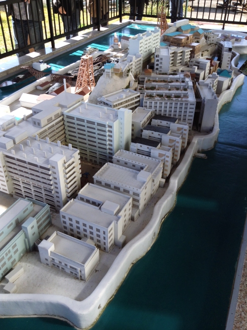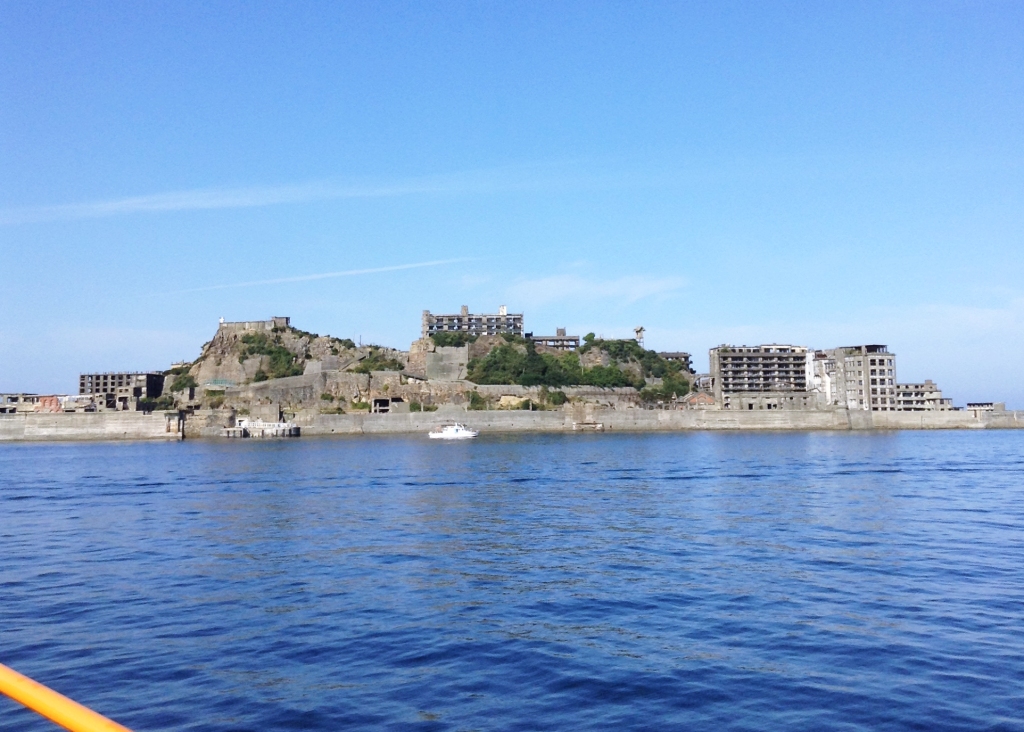 ていうか軍艦島のちょっと手前の海面に突き出してる何かコンクリートの上に釣り人がいたけど、どうやって来たの……。