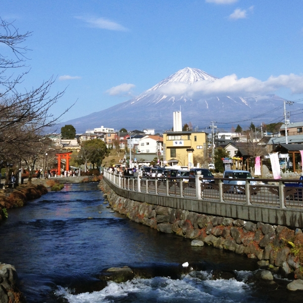 富士山は駅に着いた時は雲で覆われていたのですが、お昼を食べて神社でお参りしているうちに晴れてきて、なんとか見ることができました。