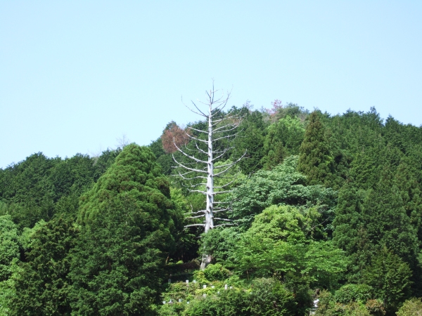 9時過ぎに柳生に到着。あらかじめ準備したマップを見て、まずは柳生十兵衛が植えたという十兵衛杉を探す。道はよく分からなかったが、落雷で枯れた木は遠くからでもかなり目立っている。