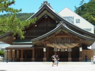 2時間半かけて出雲大社に着き、車を停めて50mほど歩いたところで、父が「暑いからもう歩きたくない」と言い出した時は家庭内争議が始まりそうでしたが、なんとか拝殿までなだめすかして行きましたとさ。