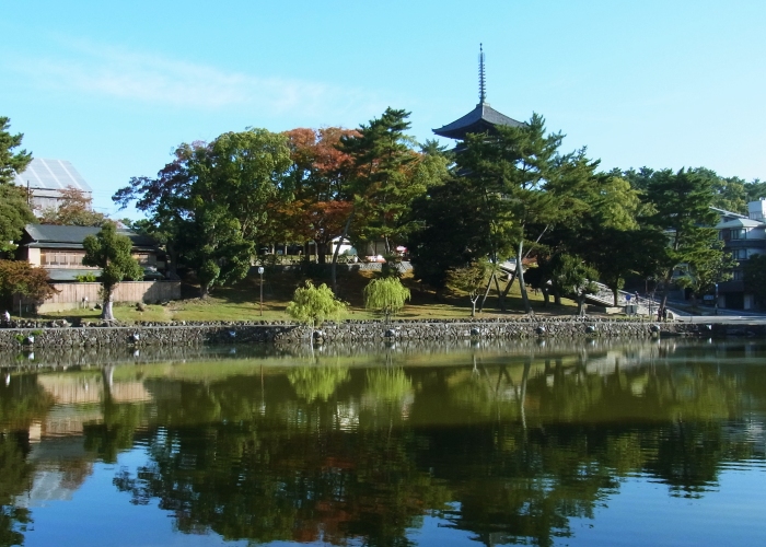 朝8時半に到着するという気合の入りっぷりでした。正倉院展期間中だけど、さすがにこの時間なら人が少ない。ので、猿沢の池で少しまったり。